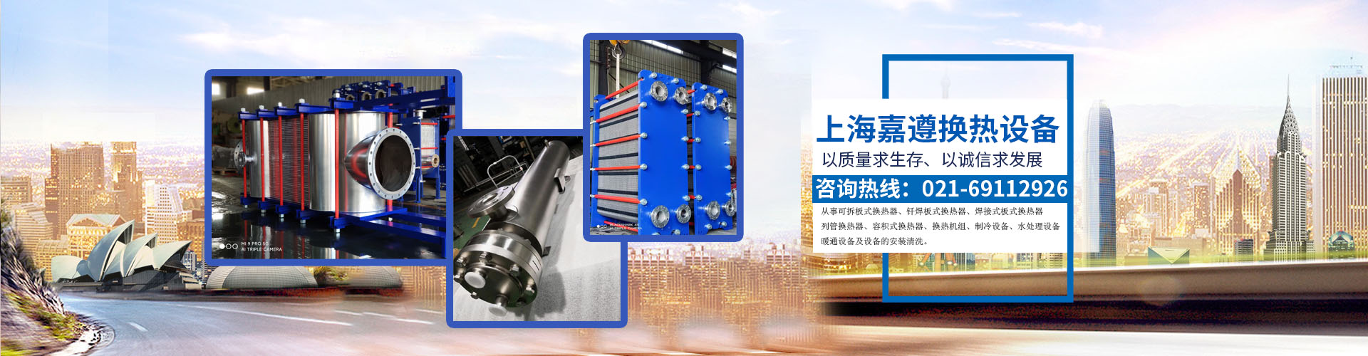 上海嘉遵机械设备有限公司 公司为了更广泛的开拓市场,结合现代网络营销新潮之路,扩大新增产品项目(列管式)换热器。于2019年在上海奉贤区注册成立上海“嘉遵”机械设备有限公司。办公地点上海市嘉定区;2016年生产厂区迁出上海,现厂区坐落于江苏省太仓市虹桥村,占地面积10余亩,引进最新设备板片液压机8000吨15000吨18000吨机型齐全,10吨以上行车两台/每车间,12米自动切割机一台,剪板机两台,卷板机两台,大型机床数台,大型焊接设备数拾台,吊挂式喷砂房一间,自动锯床一台,压力测试设备两台,机动叉车等配套设施齐全。年产板片30余万平方米,设备出炉占板片产量的91%。现在职人员110人。现与多家知名品牌供应商合作。该公司有独立的科研团队、设计、预算、流水线生产调控体系,电子...